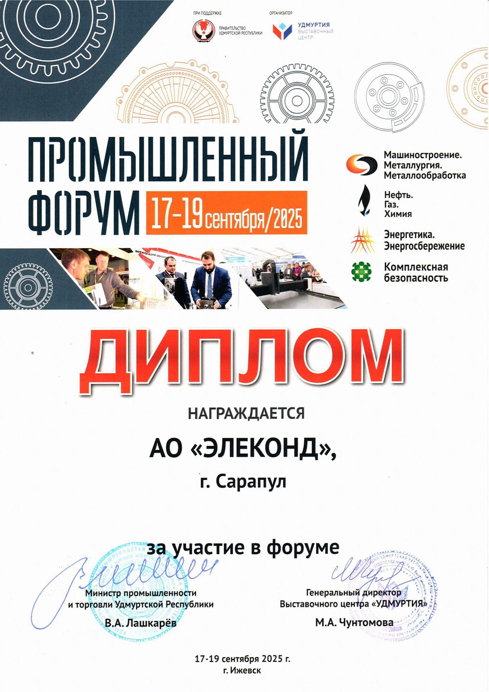 Диплом за участие в ПРОМЫШЛЕННОМ ФОРУМЕ 2025
