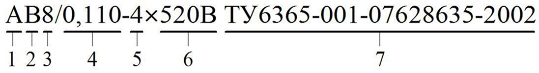 АВ1‑100,080‑0,1253, 4, 5200‑850АВ8/0,110‑4×520В